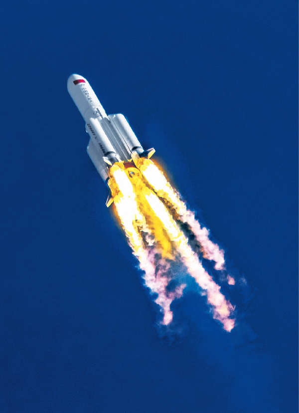 2020年5月5日18時0分,長征五號B運載火箭點火升空,我國載人空間站階段飛行任務(wù)首戰(zhàn)告捷,載人航天工程第三步發(fā)展戰(zhàn)略順利開啟。5月8日13時49分,長征五號B搭載的新一代載人飛船試驗船返回艙在東風(fēng)著陸場預(yù)定區(qū)域成功著陸,試驗取得圓滿成功。圖為長征五號B運載火箭正在升空。 人民視覺 陳肖/攝
