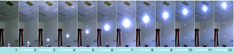 我們也做了一些關于激光推進方面的工作,圖3-8為激光推進自由飛行演示,采用平均功率千瓦級重復頻率脈沖CO2激光器,推進10.2g的金屬光船,實現(xiàn)了自由飛行。