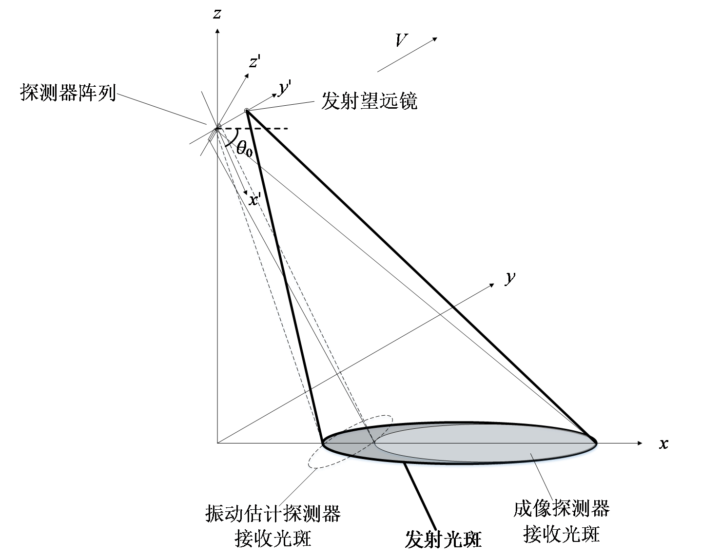與傳統(tǒng)光學(xué)系統(tǒng)圖像概念不同,SAL獲取的圖像在斜距-多普勒頻率兩維。需要寬的接收視場,但不要求具有高的空間角分辨率,具備采用一個或少量光電探測器實現(xiàn)激光雷達(dá)寬視場接收的使用條件,在原理上可用“非成像光學(xué)系統(tǒng)”。據(jù)此特點,SAL應(yīng)可通過偏置探測器在“離焦”狀態(tài)形成重疊視場,以進(jìn)行振動相位誤差估計,也應(yīng)可通過“散焦”擴(kuò)大瞬時觀測范圍。