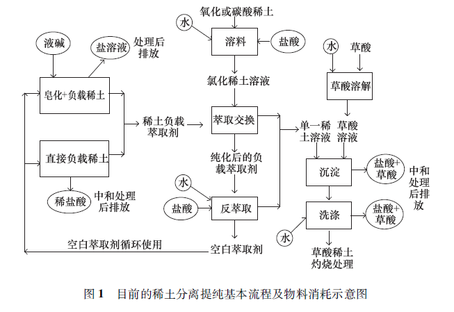 稀土分離提純工藝可大體上分為溶礦、萃取分離、沉淀幾個(gè)步驟。